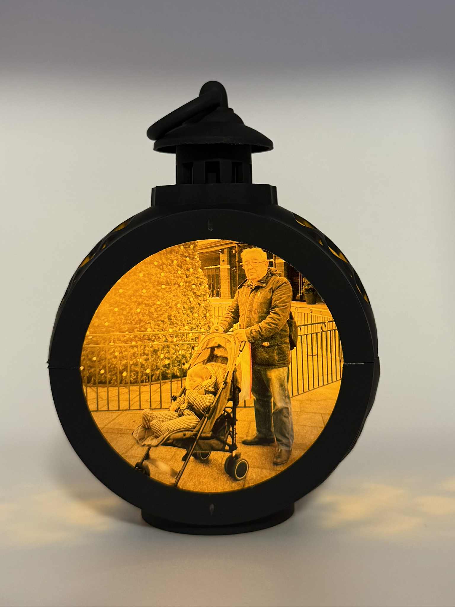 Illuminate your space with the Personalised Small Lantern in Black. This charming battery-powered lantern features double-sided images, allowing your custom design to shine beautifully from any angle. Perfect for creating a warm, personalised ambiance indoors or outdoors, its compact size makes it easy to place anywhere. Add a unique touch to your décor or gift a memorable, glowing keepsake that brightens up any room effortlessly.